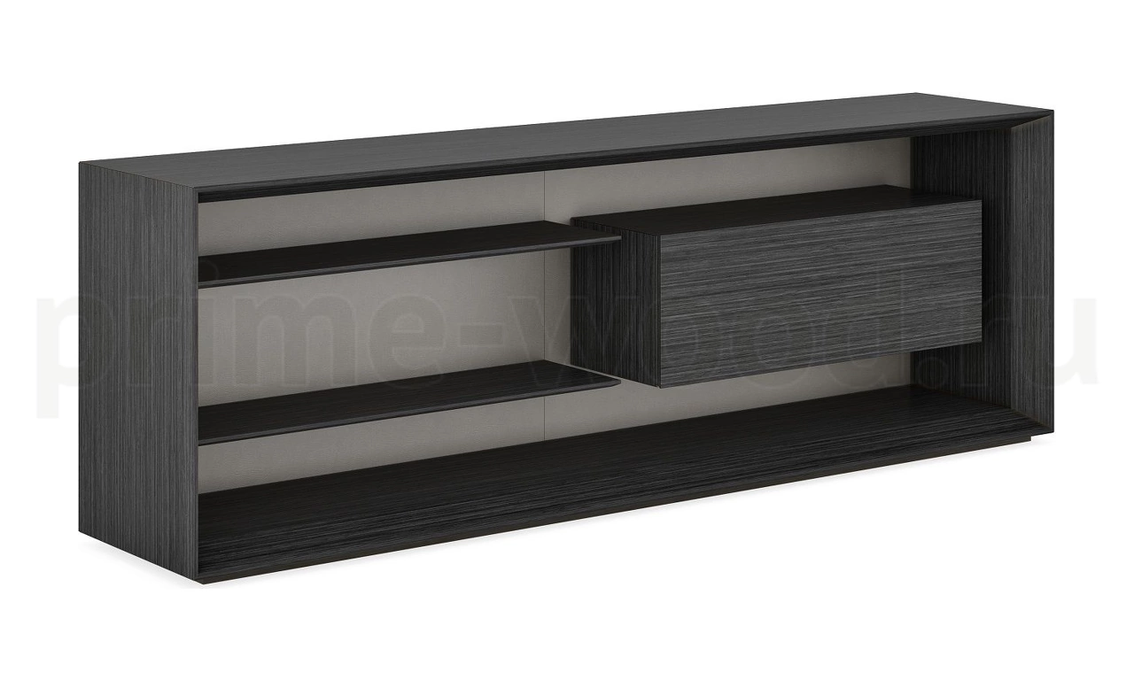 Каркас греденции - ламинат, фасад двери - шпон римского дуба TA24YA, задняя стенка и корпус подвесного шкафа - премиальная серая покраска TA15.