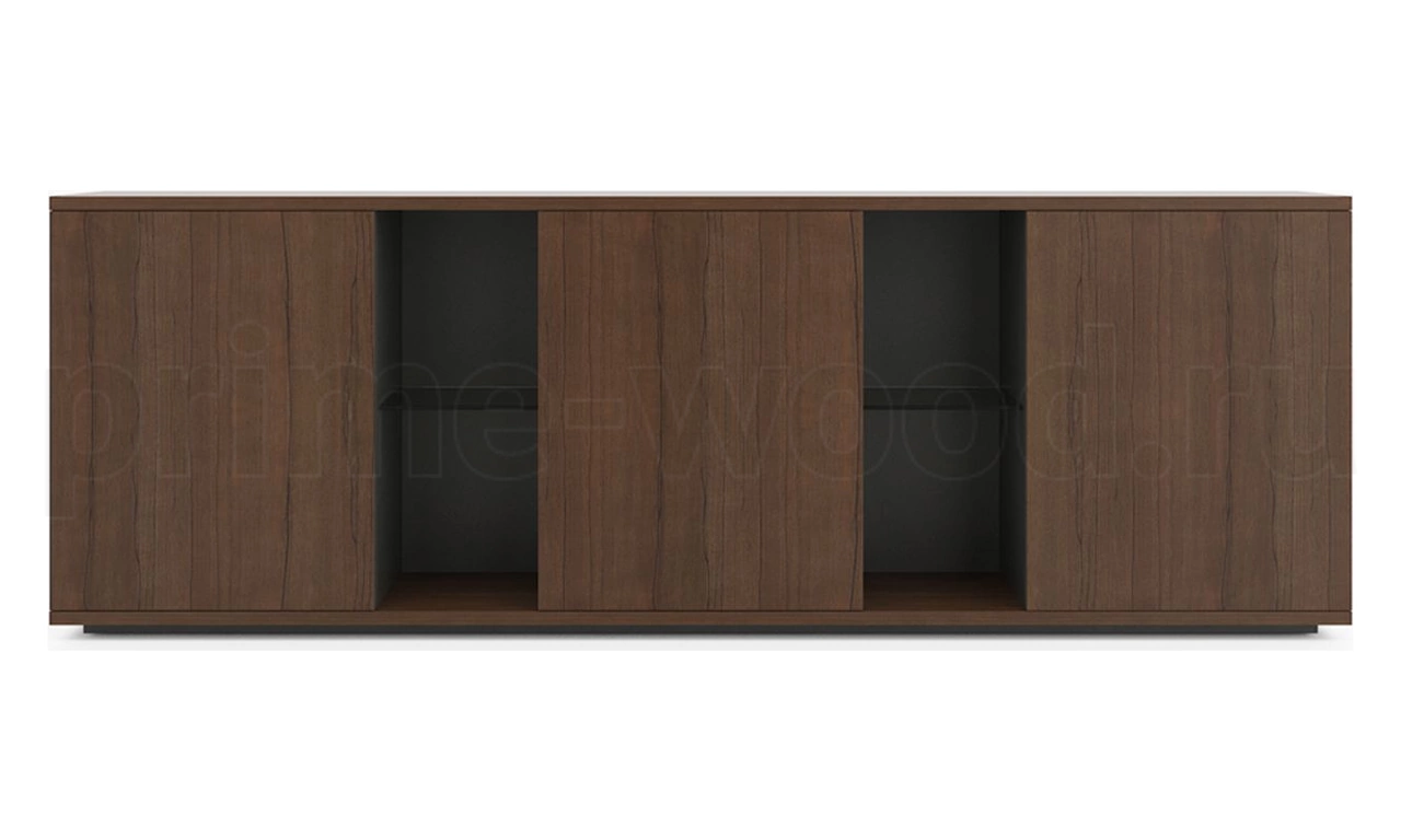 Греденция с тремя глухими дверцами и черными полками.