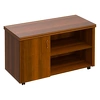 Материалы: Ламинированная ДСтП, кромка ПВХ. Врезной кант ПВХ в тон ЛДСтП. Накладки из массива дерева, декор «темный орех». Декоративный профиль МДФ, декор «темный орех». Столешницы столов и брифингов, боковые опоры – 44 мм. Каркасы тумб и шкафов, полки, двери и фасады ящиков – 18 мм.