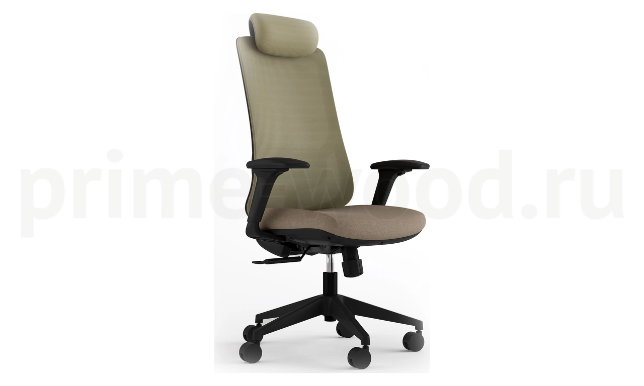 Кресло с высокой сетчатой спинкой и сиденьем из ткани