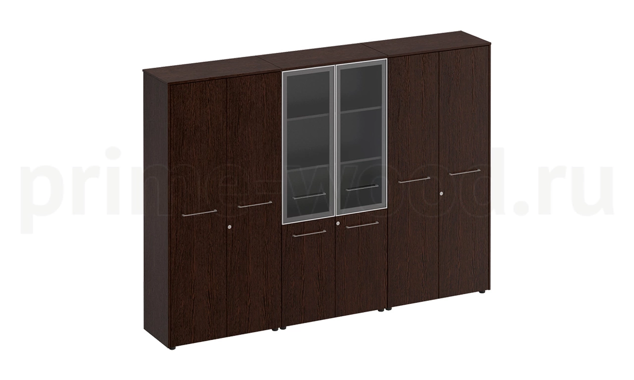 Шкаф комбинированный высокий (закрытый + стекло + одежда)